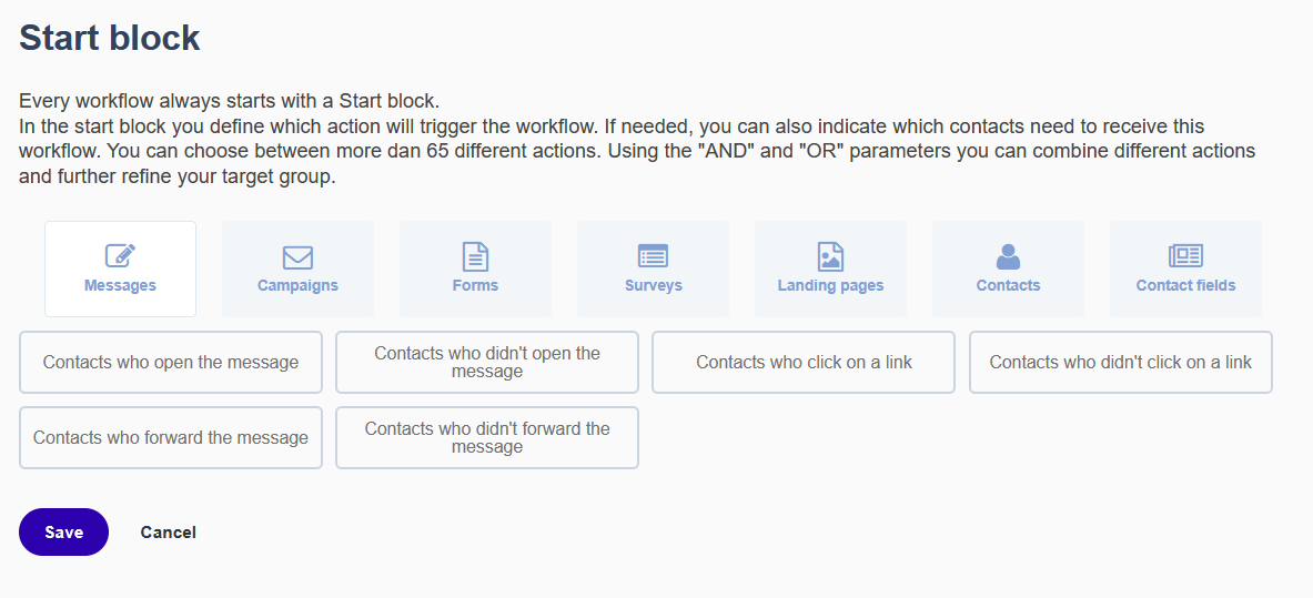 This article walks you through building a workflow in Flexmail, from creating the workflow to configuring each block type. Before you start, work through the planning steps in "Get