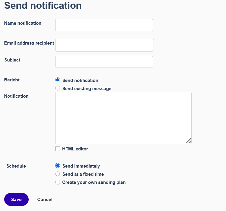 - Set the timing, immediately, at a fixed time or on specific days within a specific time frame.