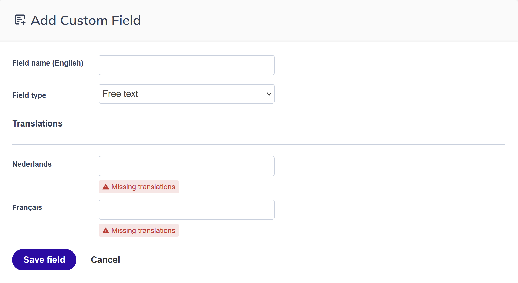 If you send in multiple languages and leave custom field names untranslated, contacts see the fallback language version on your opt-in forms, which may be in a language they do not understand. Add translations when you create the field.