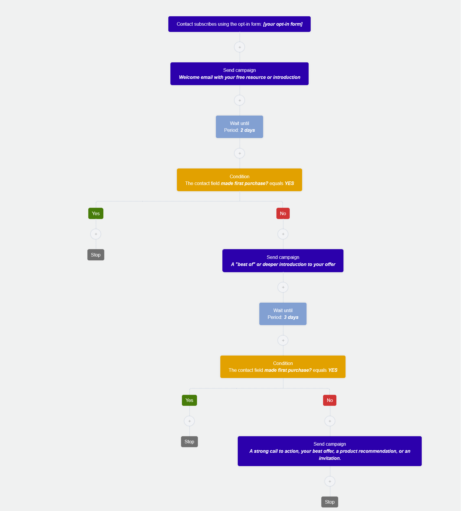 - Using only fixed wait times between emails with no conversion checks. This is the most common cause of contacts receiving irrelevant emails after they've already taken the desired action.