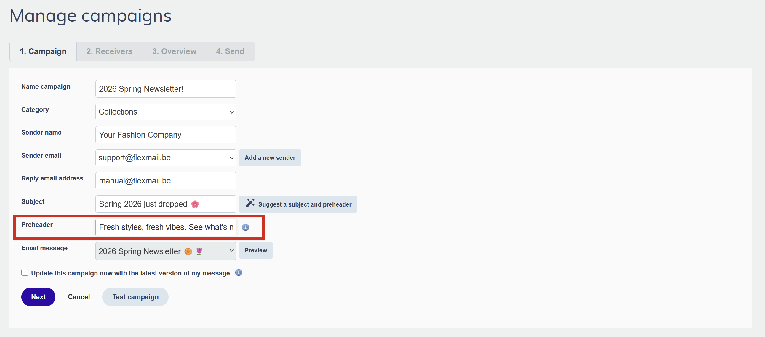 How to set a preheader in Flexmail