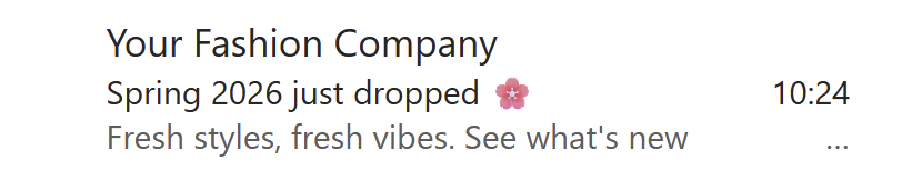 Your subject line gets most of the attention, but the preheader is the short preview text that appears right next to it in the inbox. Most email clients display it as a grey snippet after the subject line, before a contact opens the email.