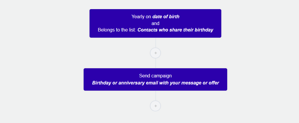 - Send block: Birthday or anniversary email with your message or offer.