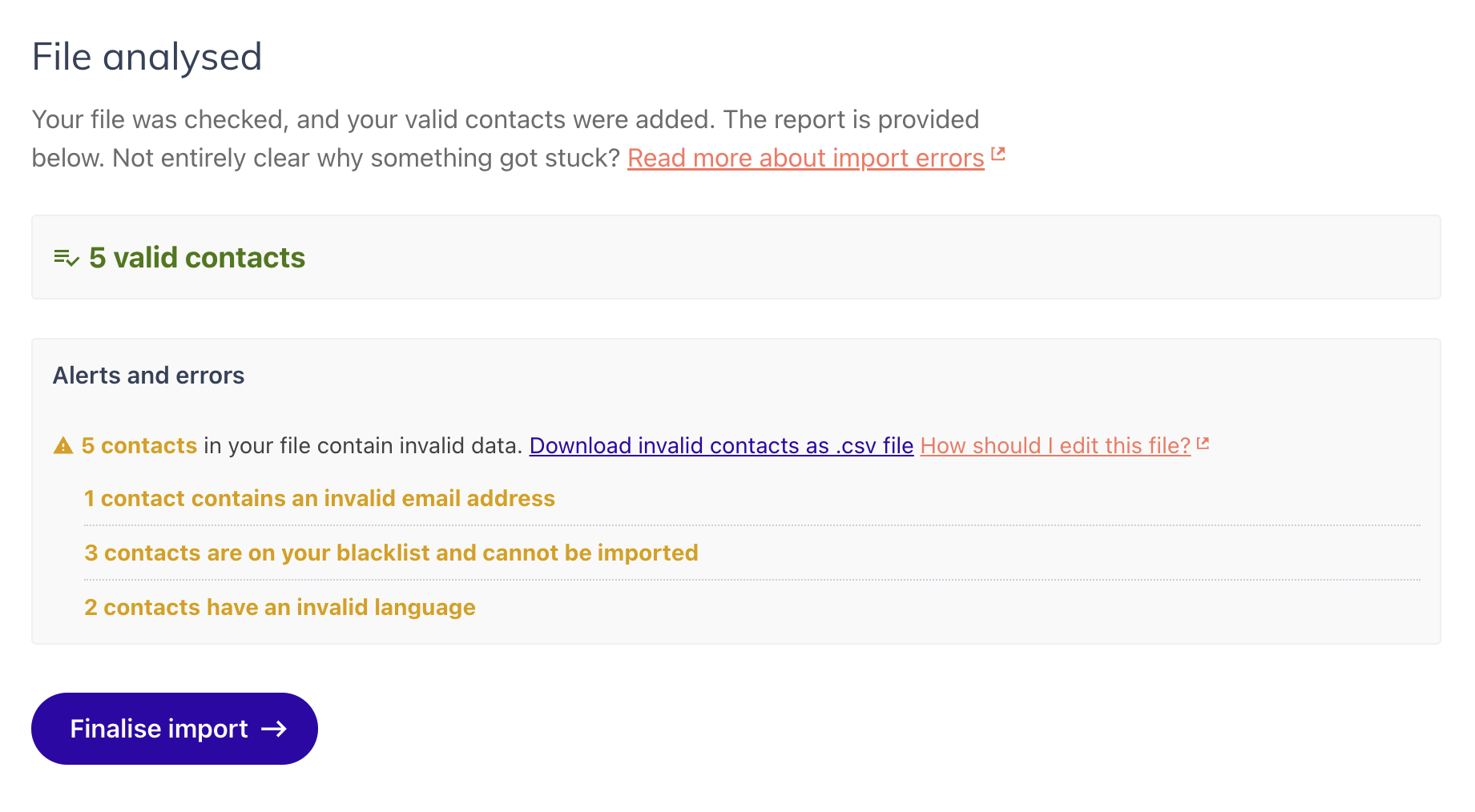 - Read "Import errors" if your import summary shows rows that could not be processed