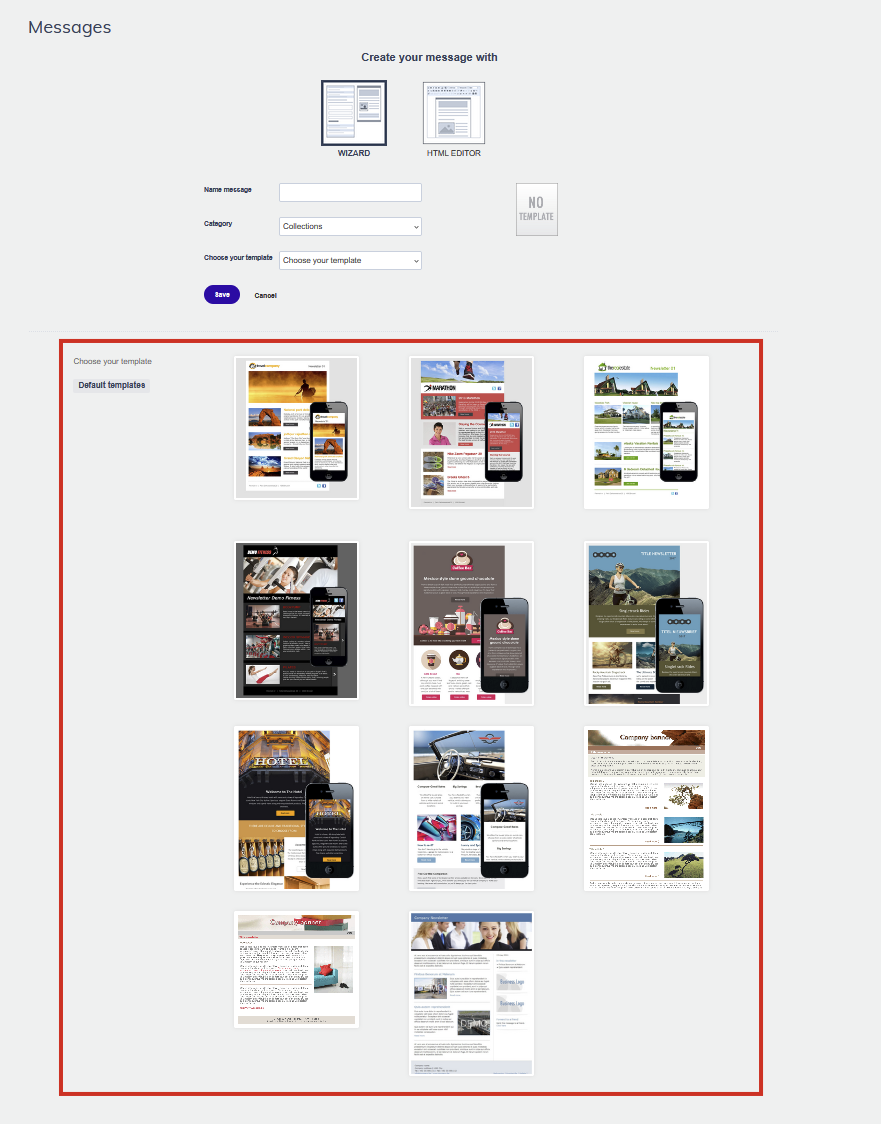 The Wizard Template does not support custom HTML, drag-and-drop layout changes, or showing and hiding sections based on contact data (dynamic content). For those capabilities, use the Email builder or the HTML editor.
