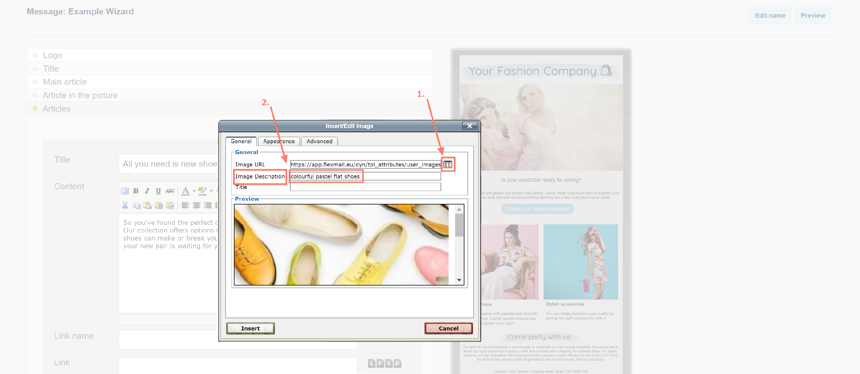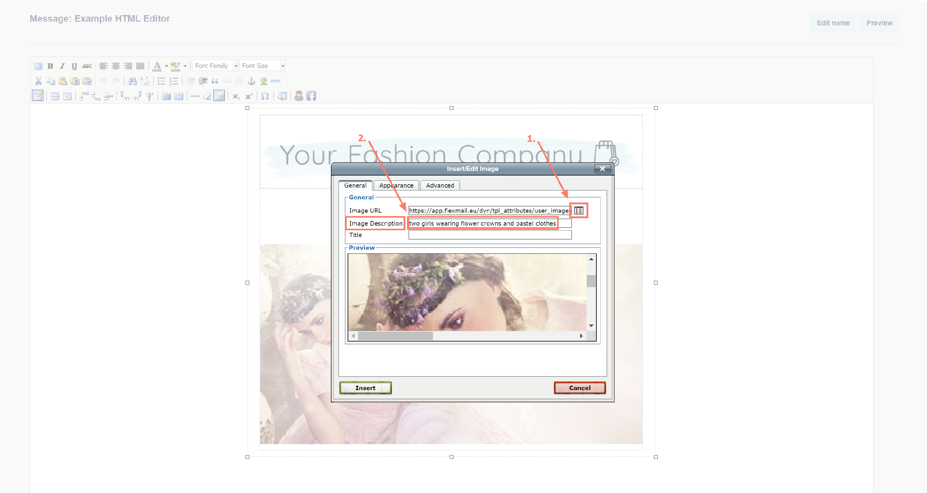 - select your image via Browse → fill in the Image Description as alt text → click Insert.