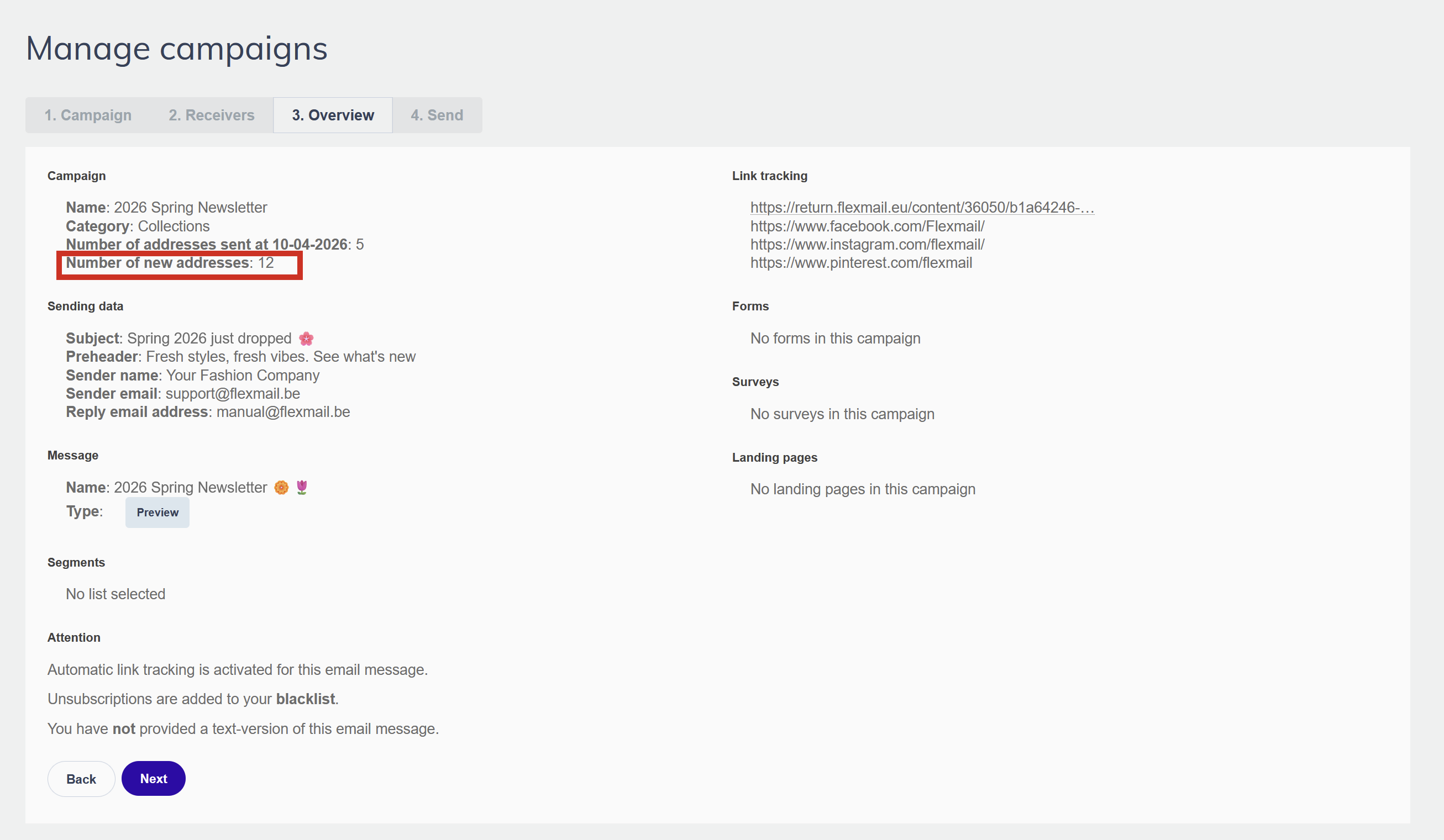 Flexmail automatically checks which contacts in your selected segments have already received the campaign and skips them. Only contacts who weren't included in the original send will receive the relaunch. You don't need to manually exclude anyone.