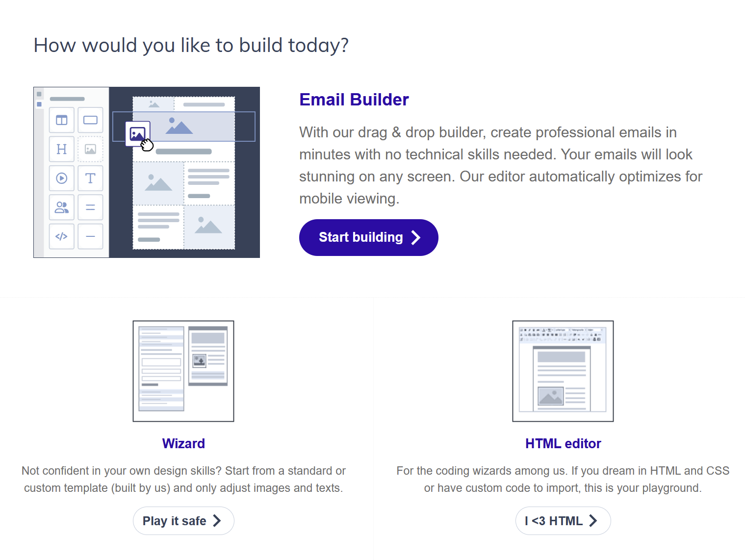 Click Start building in the Email builder section.
