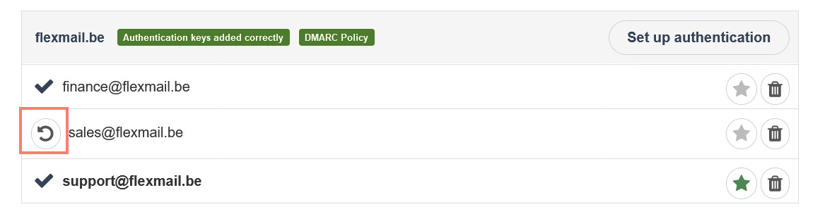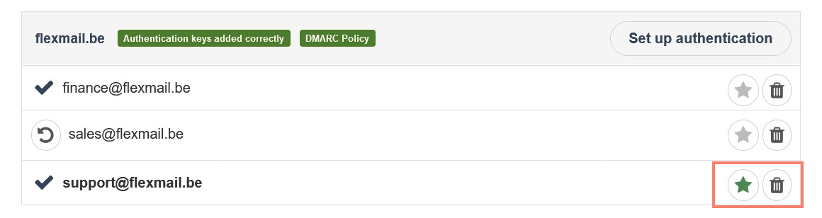Now that your sender address is validated, Flexmail knows you're allowed to send from it. But the receiving mail servers (Gmail, Outlook, Yahoo and others) don't know that yet. Email authentication is the step that tells them your emails can be trusted.