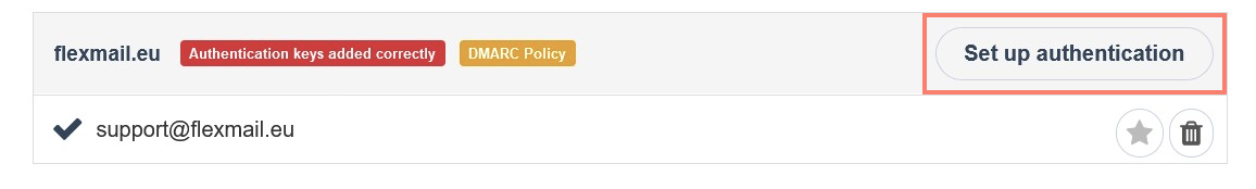 Your sender addresses are grouped by domain. Click the Set up authentication button next to the domain you want to authenticate.